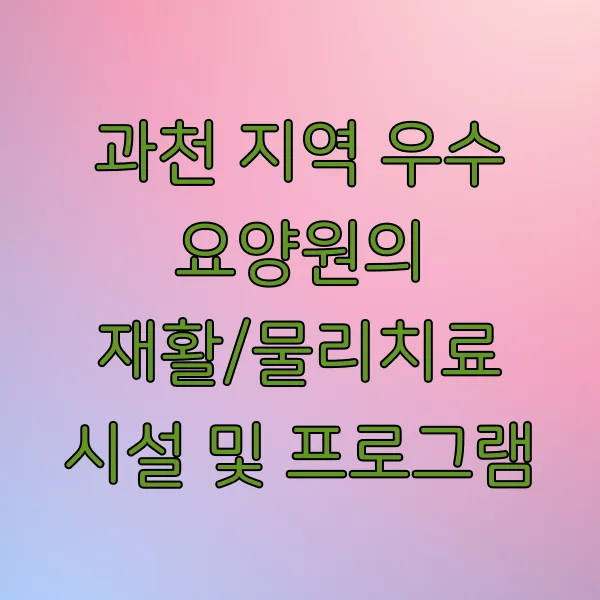 과천 지역 우수 요양원의 재활/물리치료 시설 및 프로그램