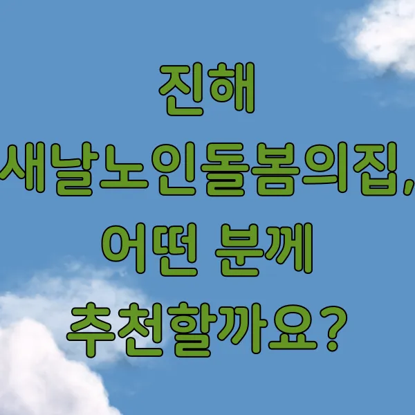 진해 새날노인돌봄의집, 어떤 분께 추천할까요?