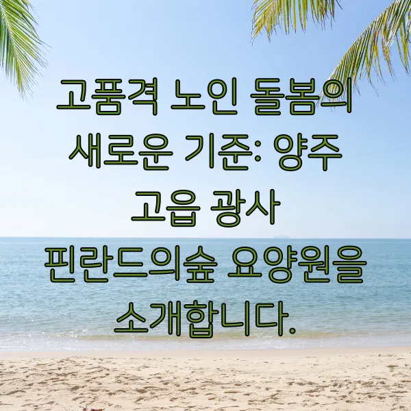 고품격 노인 돌봄의 새로운 기준: 양주 고읍 광사 핀란드의숲 요양원을 소개합니다.