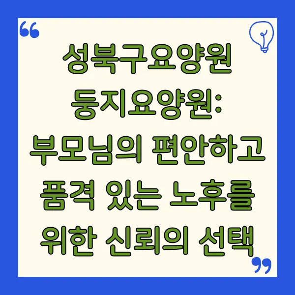 성북구요양원 둥지요양원: 부모님의 편안하고 품격 있는 노후를 위한 신뢰의 선택